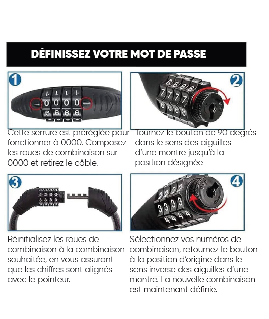 Cadenas à serrure numérique anti vol pour moto, bicyclette, dernière génération.