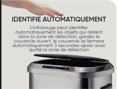 L’infrarouge peut identifier automatiquement les objets qui restent dans la zone de détection. Gardez le couvercle ouvert, le couvercle se fermera automatiquement 3 secondes après avoir quitté la zone de détection.