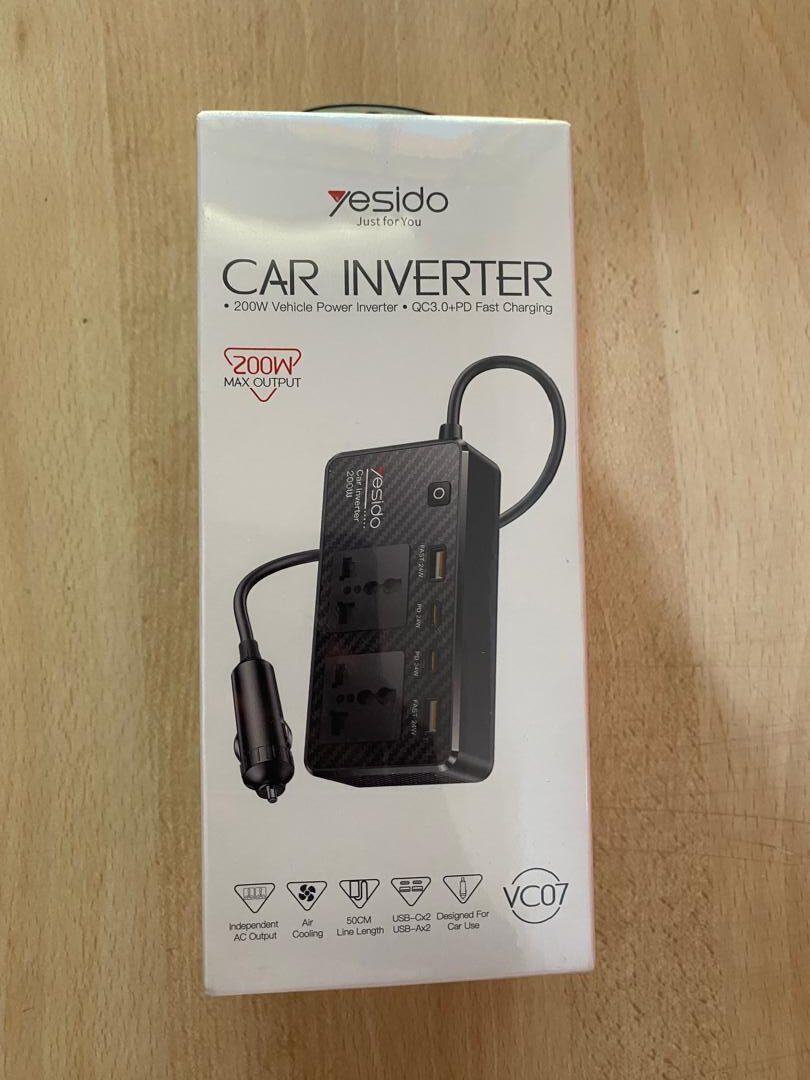 Convertisseur de puissance de voiture 200W, avec sortie indépendante AC et charge rapide à interface complè te.